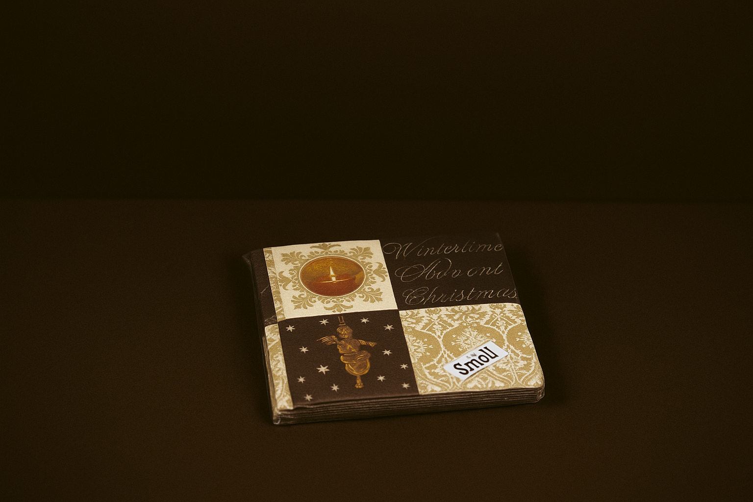 Stylowe serwetki papierowe bożonarodzeniowe z nadrukiem aniołka i świecy w odcieniach złota i brązu dodadzą elegancji każdej świątecznej aranżacji.