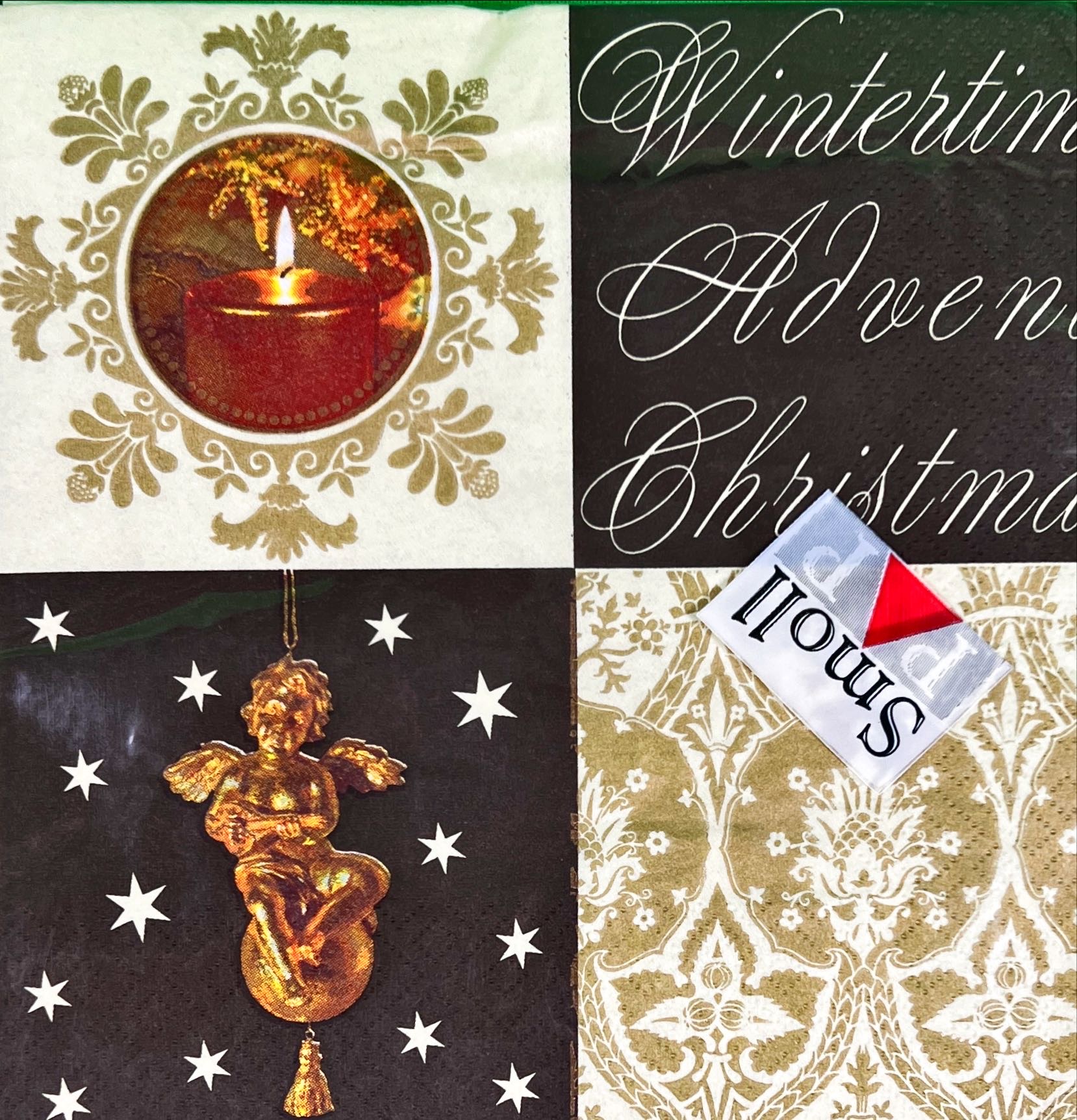 Serwetki papierowe bożonarodzeniowe z nadrukiem aniołka i świecy – 20 szt., 3-warstwowe, 33×33 cm
