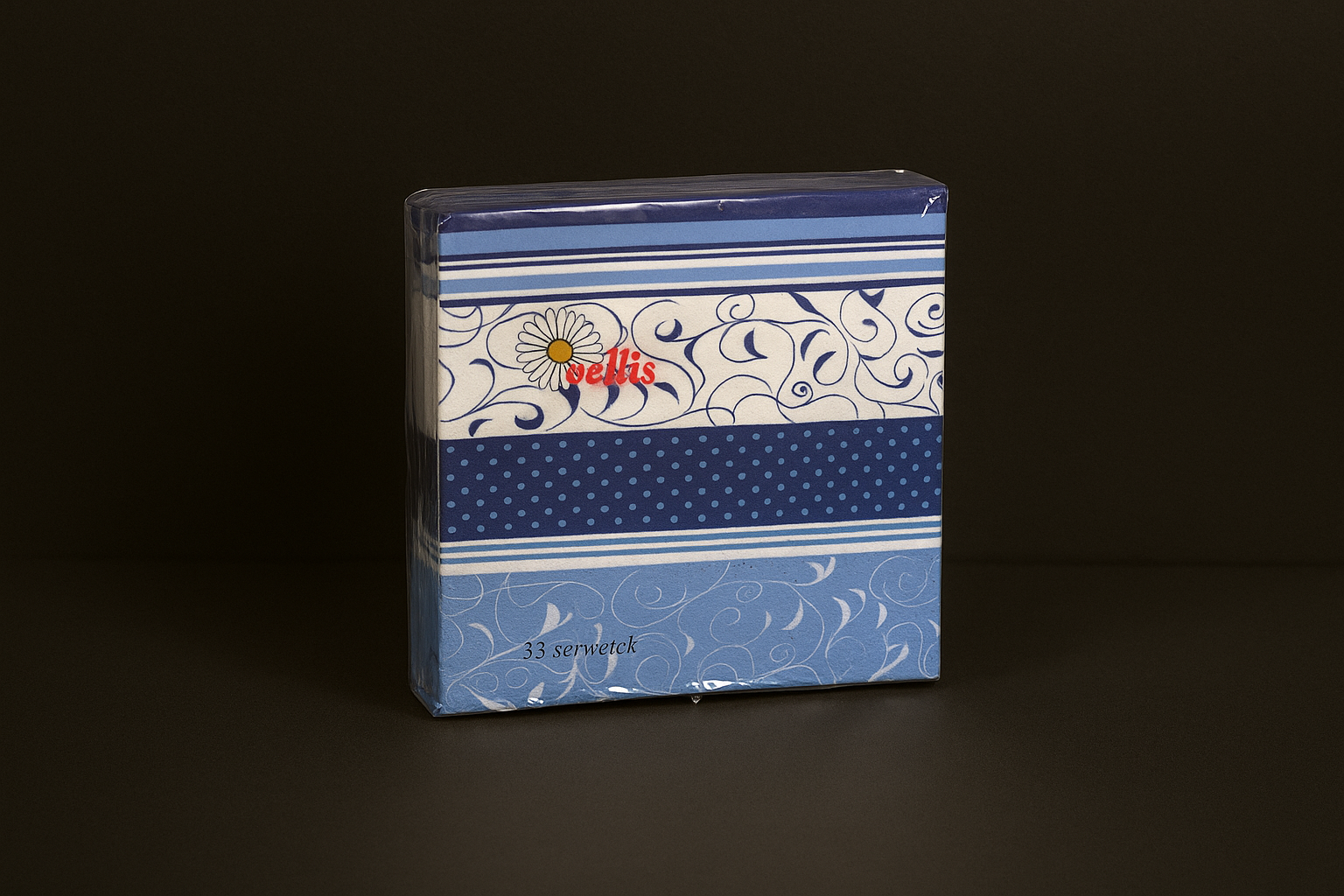 Ponadto nadruk w odcieniach niebieskiego jest trwały i odporny na rozmazywanie, dzięki czemu serwetki zachowują nienaganny wygląd przez całe spotkanie.